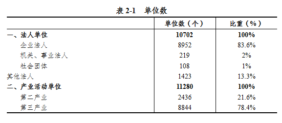 2023年末,全县共有从事第二产业和第三产业活动的法人单位10702个,比2018年末增加6691个,增长166.8%;产业活动单位[1]11280个,增加6555个,增长138.7%。(详见表2-1)。