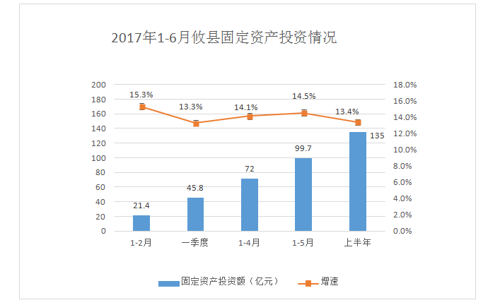 上半年,全县完成固定资产投资135.16亿元,同比增长13.4%。其中工业投资71.2亿元,同比下降3.6个百分点;房地产投资12.8亿元,增长0.7%。