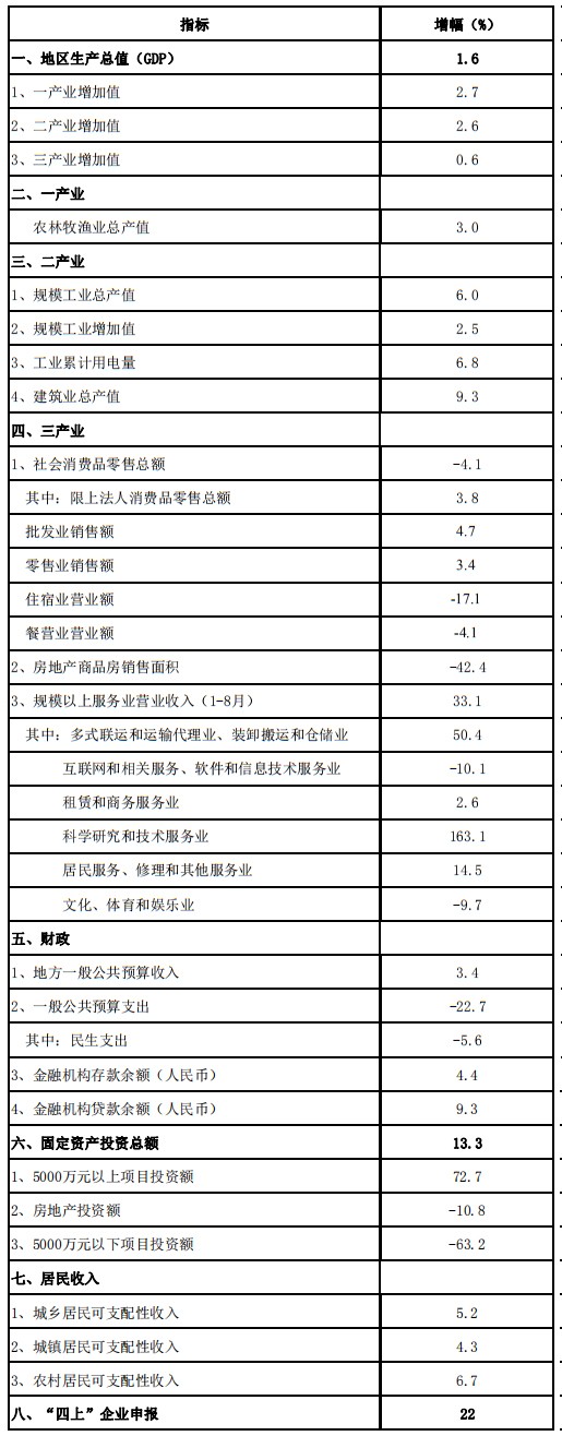2020年三季度国民经济主要指标