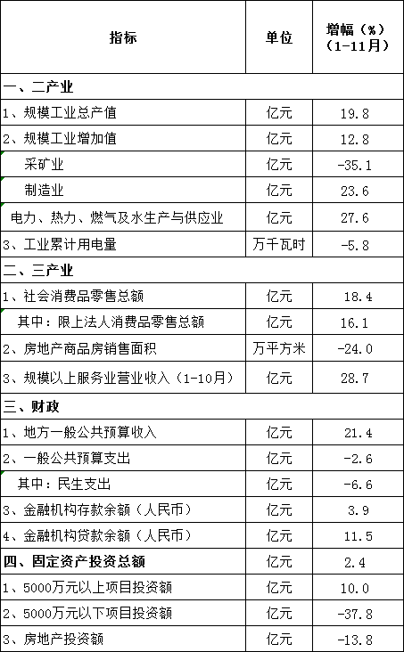2021年1-11月份国民经济主要指标