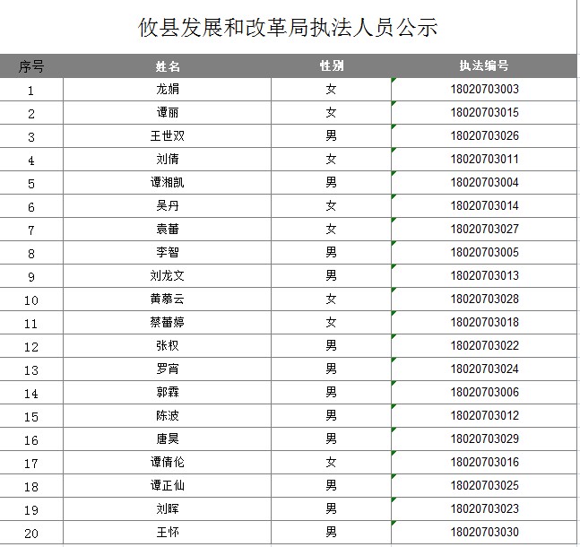 攸县发展和改革局执法人员公示