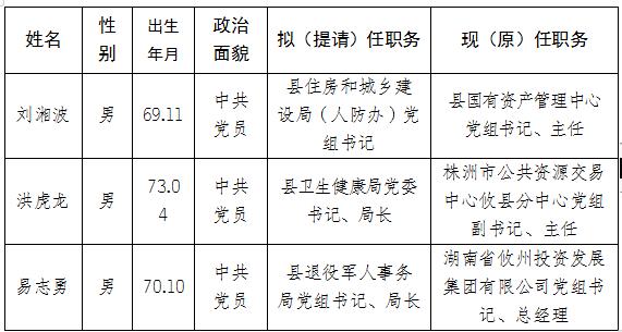 为了加强对干部选拔工作的监督,提高识别和任用干部的准确程度,现对县委常委会议研究决定的下列3名拟调任人选进行任前公示: