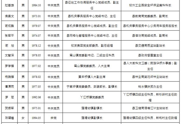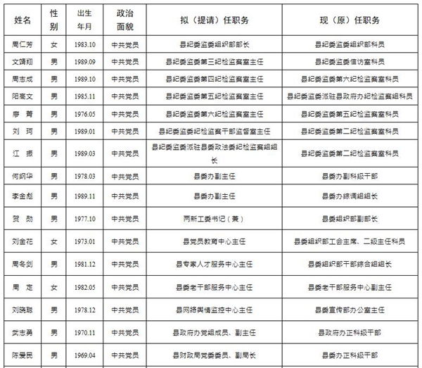 为了加强对干部选拔工作的监督,提高识别和任用干部的准确程度,现对县委常委会议研究决定的下列44名拟任职人选进行任前公示: