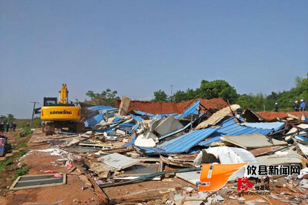 4月17日上午,江桥街道联合工业园、住建局、县拆违办、县拆违控违执法大队等相关单位200多名执法人员对鸿华麻鸭厂附近的临时工棚,竹塘冲组村民李某的杂屋、鱼塘、钢棚等9处违法建筑进行了依法拆除。