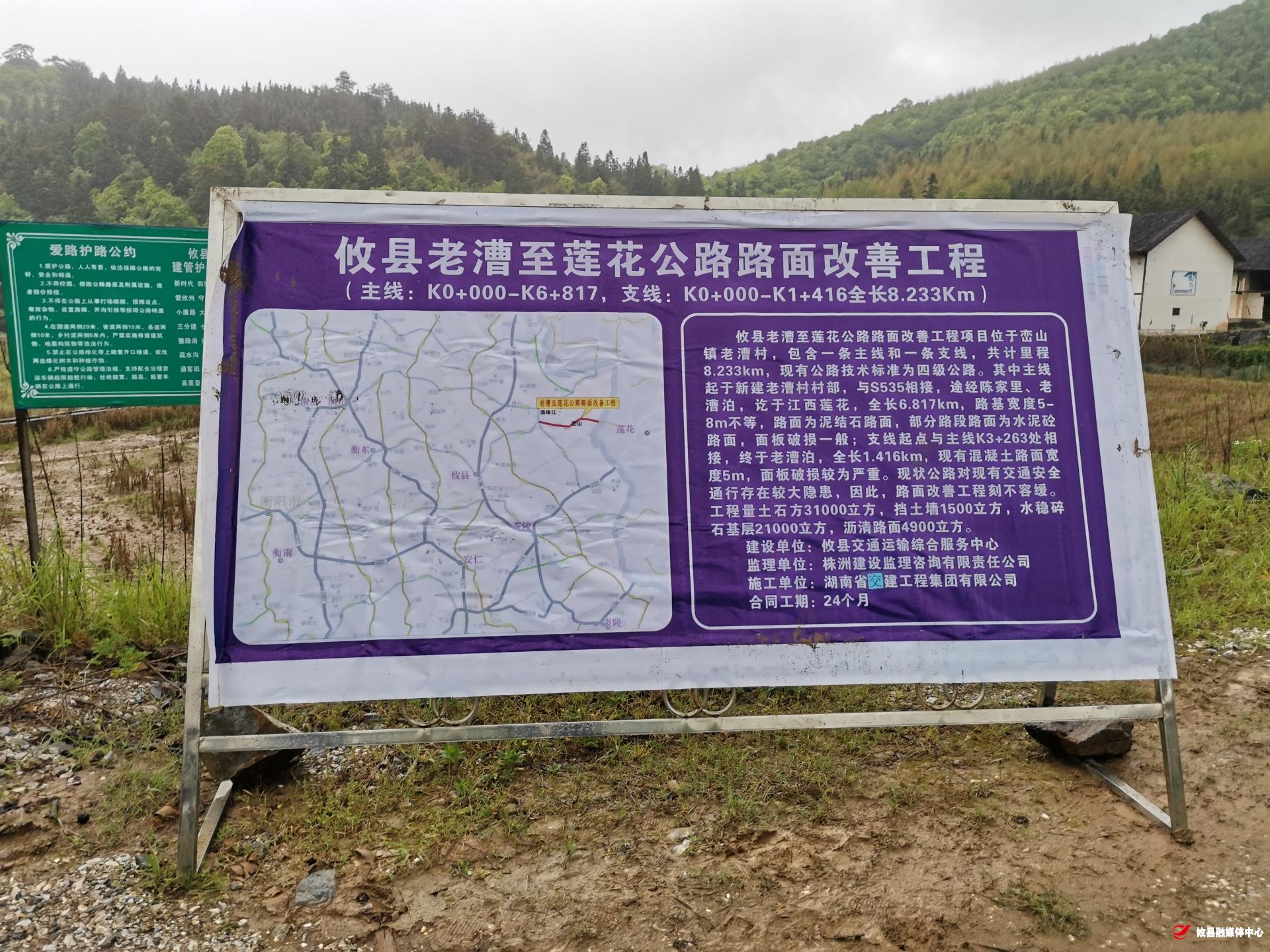 攸县老漕至莲花公路路面改善工程全长8.233公里,包含一条主线和一条支线,根据提质改造要求,路面宽度将由5米增至7米,公路等级由四级提升至三级。建成后,两地群众通行条件将得到很大改善。