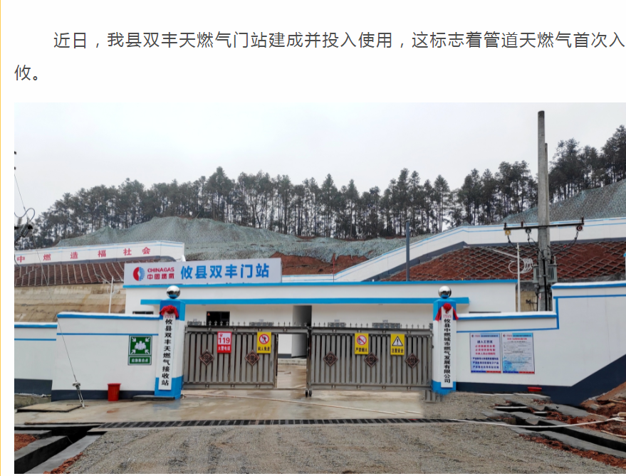 近日,我县双丰天燃气门站建成并投入使用,这标志着管道天燃气首次入攸。