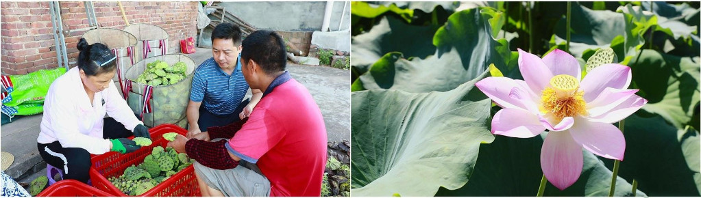 村庄美了,更让村民的腰包鼓起来了。近年来,涟滩村通过多方考察,引进了2100余亩湘莲种植,通过莲蓬采收带动全村700余名劳动力增收。同时,在县征地工作协调服务中心驻村工作的帮助下,涟滩村利用村里的闲置房屋,办起了吨袋加工厂,带动附近10余人稳定增收。
