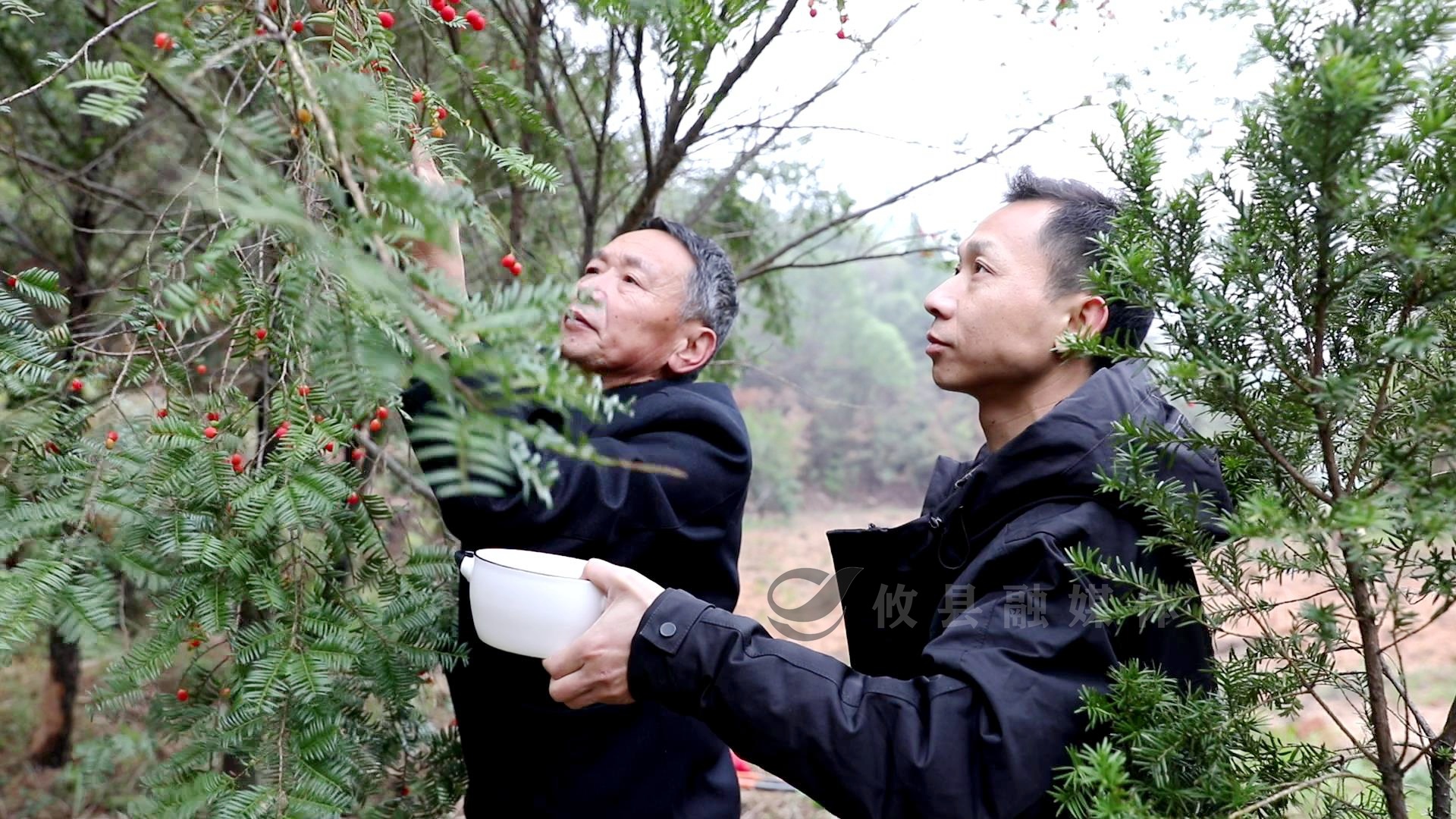 在丫江桥镇华富村的神舟红豆杉科研基地,基地负责人肖初明和当地村民正在采集第一代航天育种红豆杉结出来的第一批果实。据了解,野生红豆杉果实一般在立冬时节开始成熟,受干旱影响,今年果实成熟期往后推迟了20多天。