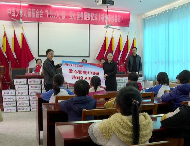 12月10日,县妇联联合县教育局,为鸭塘铺中学的170名贫困留守儿童送去了中国儿童少年基金会“HELLO 小孩”爱心套餐。