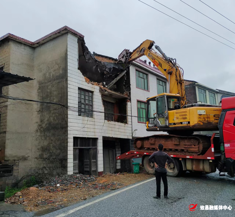 前不久,在村民自建房的普查中将此列入危房管理。为尽早消除安全隐患,镇村开展联合行动,租用一部大型挖掘机对危房进行了立即拆除处理。